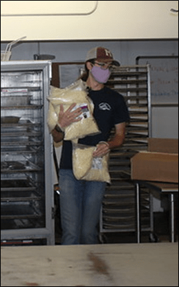 For this first night, Johnny will lead youth in cooking a meal to share (parents are welcome to eat with kids). We do have a family space reserved 5-6:30pm for parents waiting to eat dinner, with a table and chairs and wifi. Here is a photo Johnny from the choir gave me of him carrying big bags of cheese!!